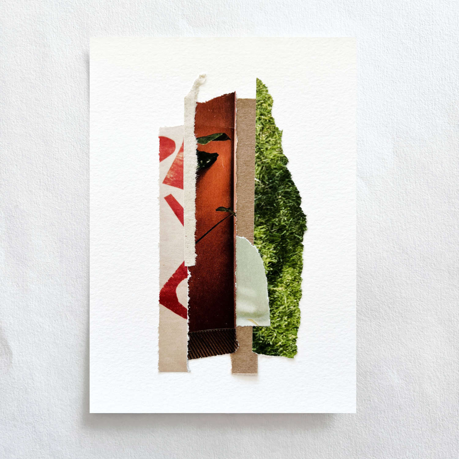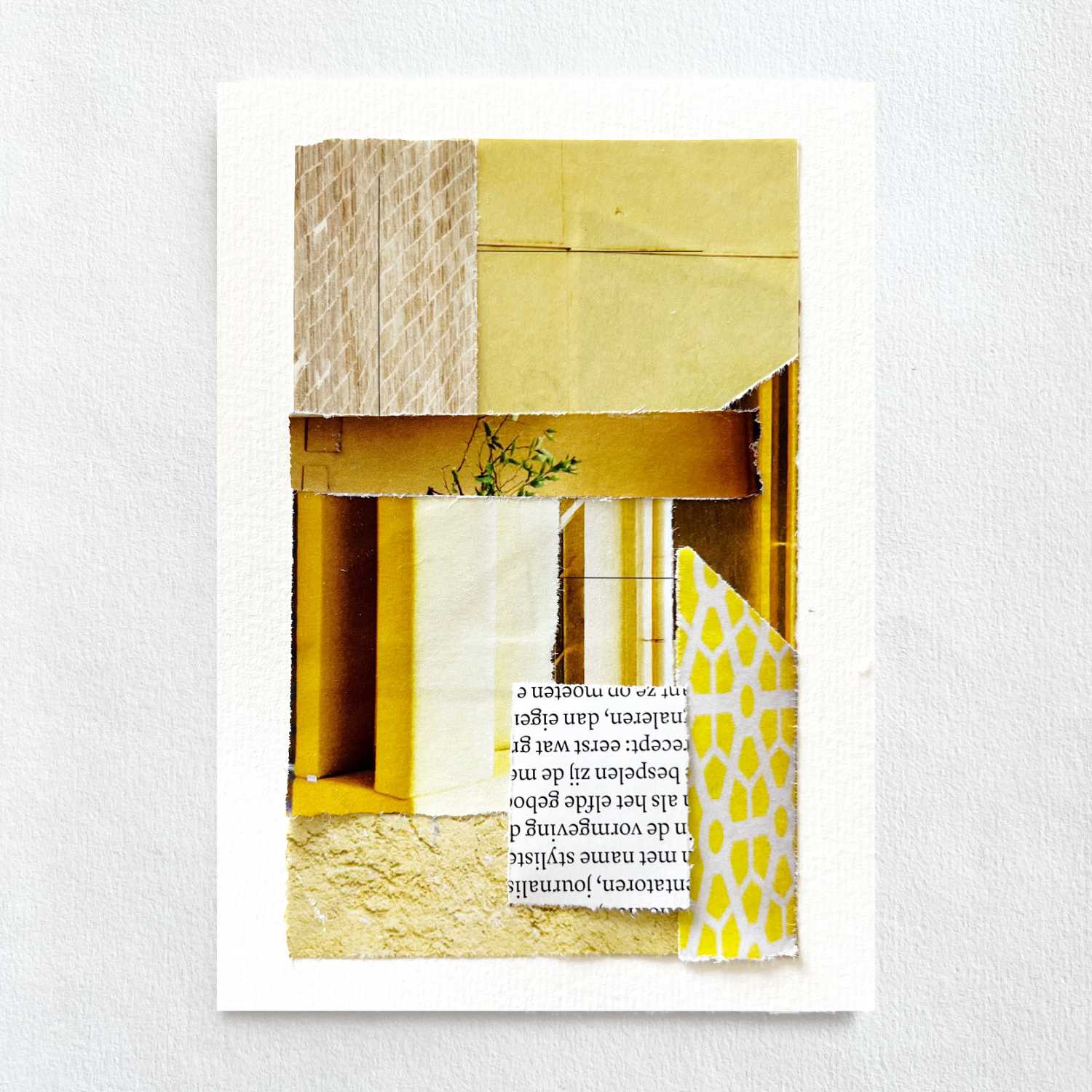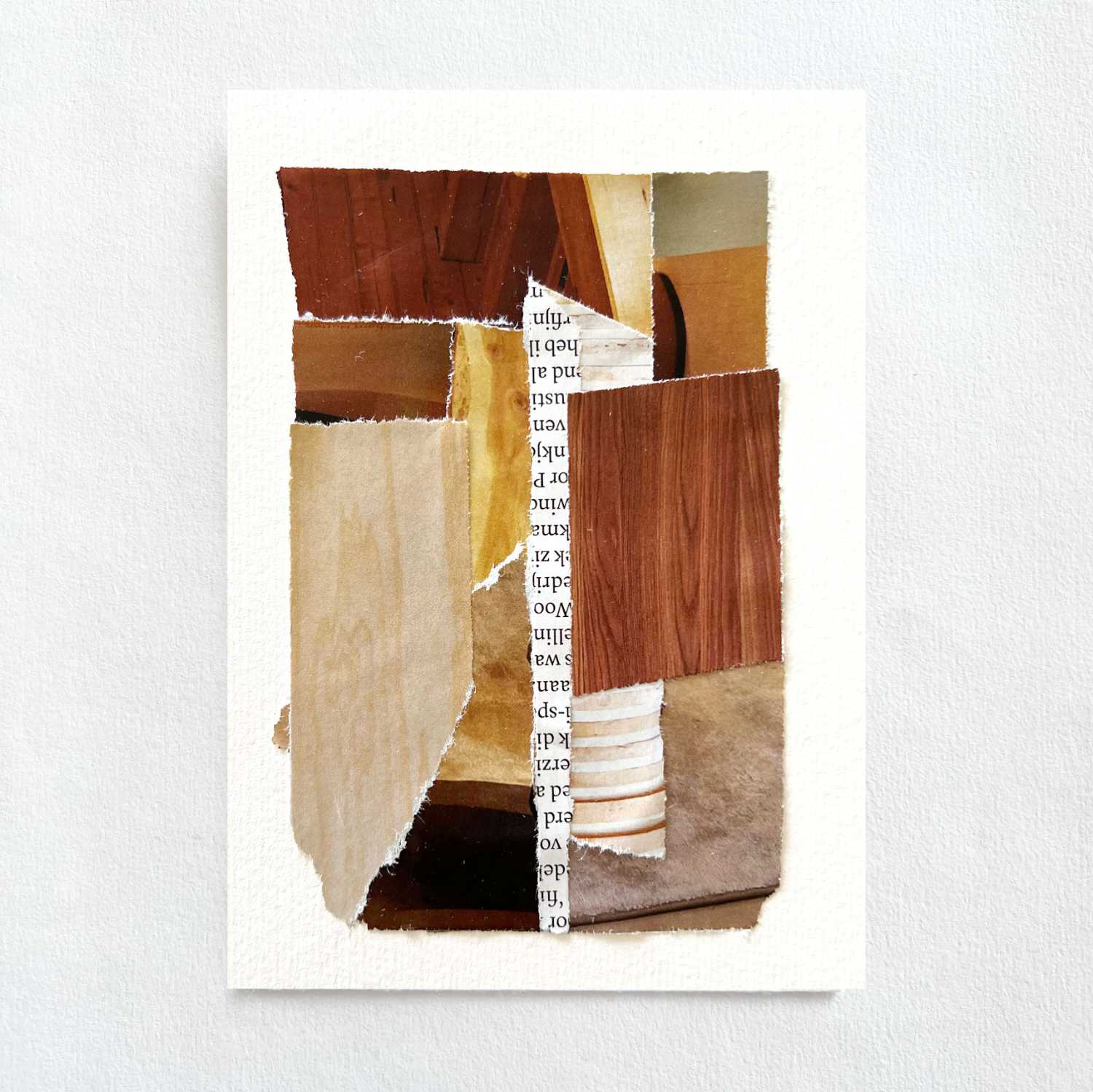 The Brown Series is de eerste vormenstudie die ik deed. Ik rangschikte dezelfde knipsels telkens op een nieuwe manier om gevoel voor compositie te krijgen en maakte zo vele kleine collages. Deze vijf varianten waren de enige die ik niét vergat te fotograferen terwijl ik in de creatieve flow zat. Alle vormenstudies hierna deed ik wel met meerdere knipsels, zodat ik ze tot definitieve collages kon plakken.