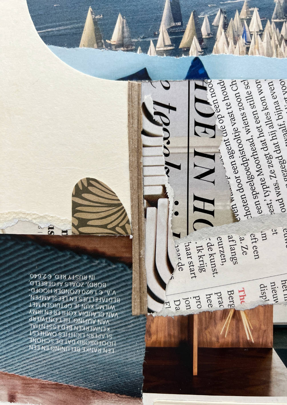 Kleine composities van hier en daar dezelfde knipsels. Deze collages zijn allen tijdelijk en bestaan enkel op foto. Dit was een proces vol uitproberen en spelen met combinaties.